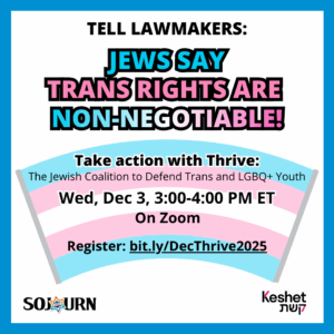 Join Thrive on Dec 3 at 3 PM ET as we reflect on 2025 legislation, prepare for next year’s fights, and take action to protect trans and LGBTQ+ youth.